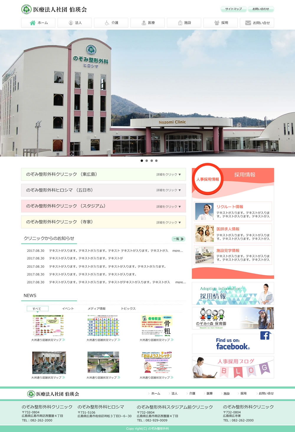 医療機関のホームページでは、「正確な情報」と「信頼性」が重要なため、情報整理と分かりやすさを重視して制作しています。