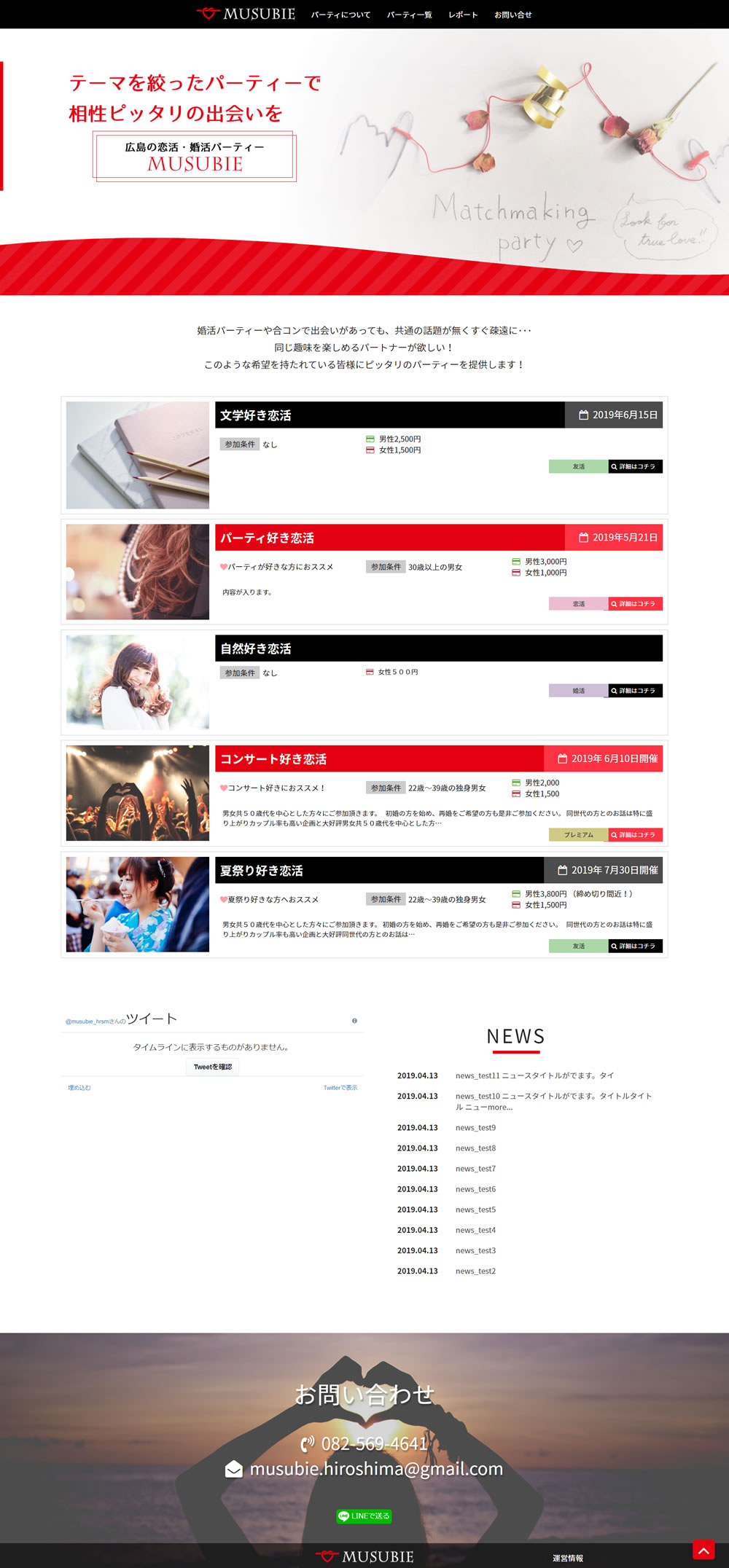 婚活・友活・恋活パーティの情報を分かりやすく伝え、参加につながるホームページを作りたいというご相談をいただきました。