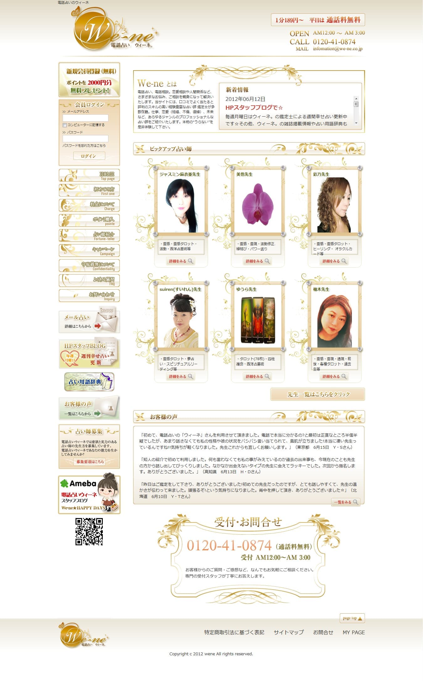 「電話占いウィーネ」様のホームページ制作をご依頼いただきました。