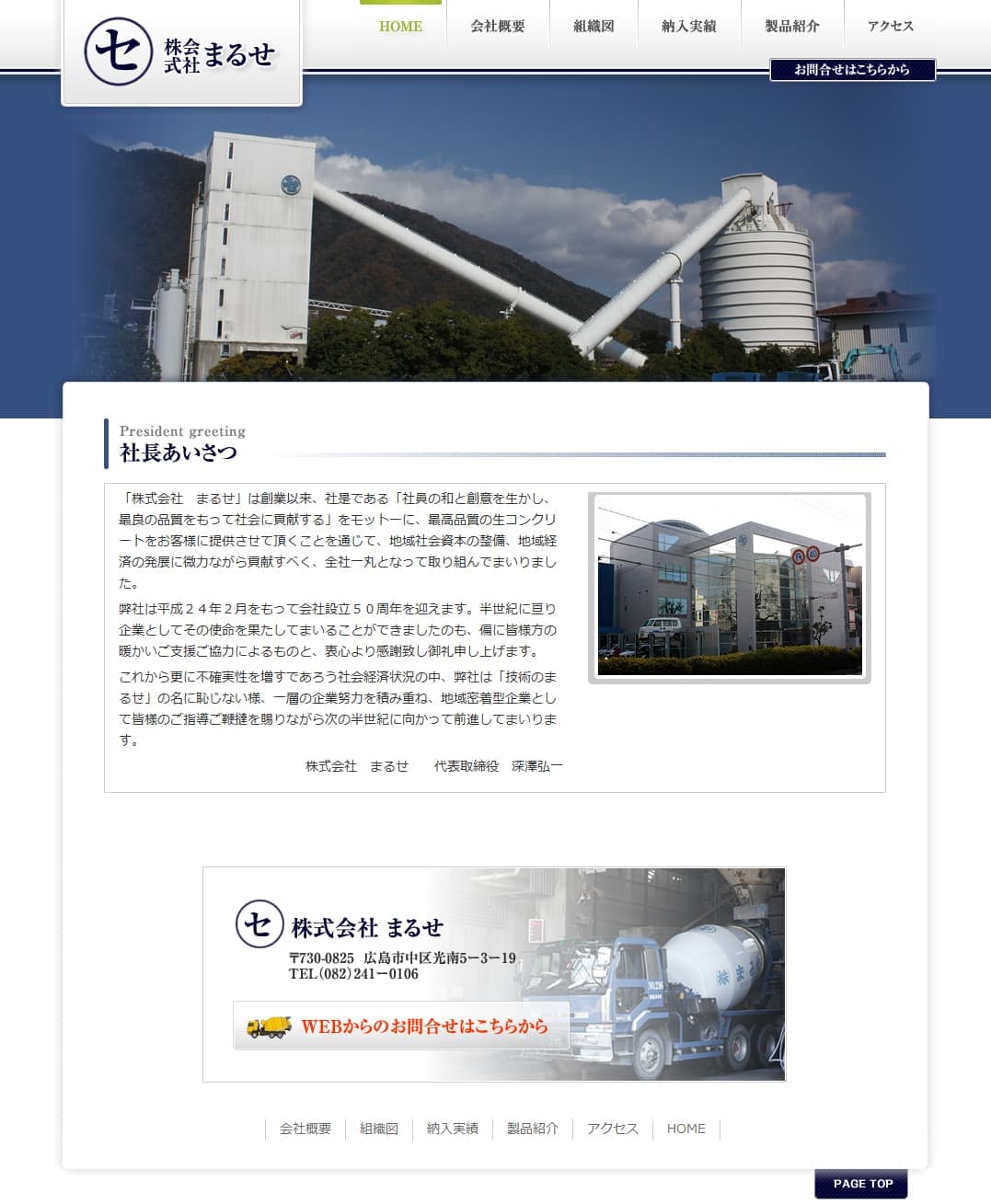 生コンクリート製造という専門性の高い業種でも、事業内容や強みが分かりやすく伝わるよう情報を整理しています。