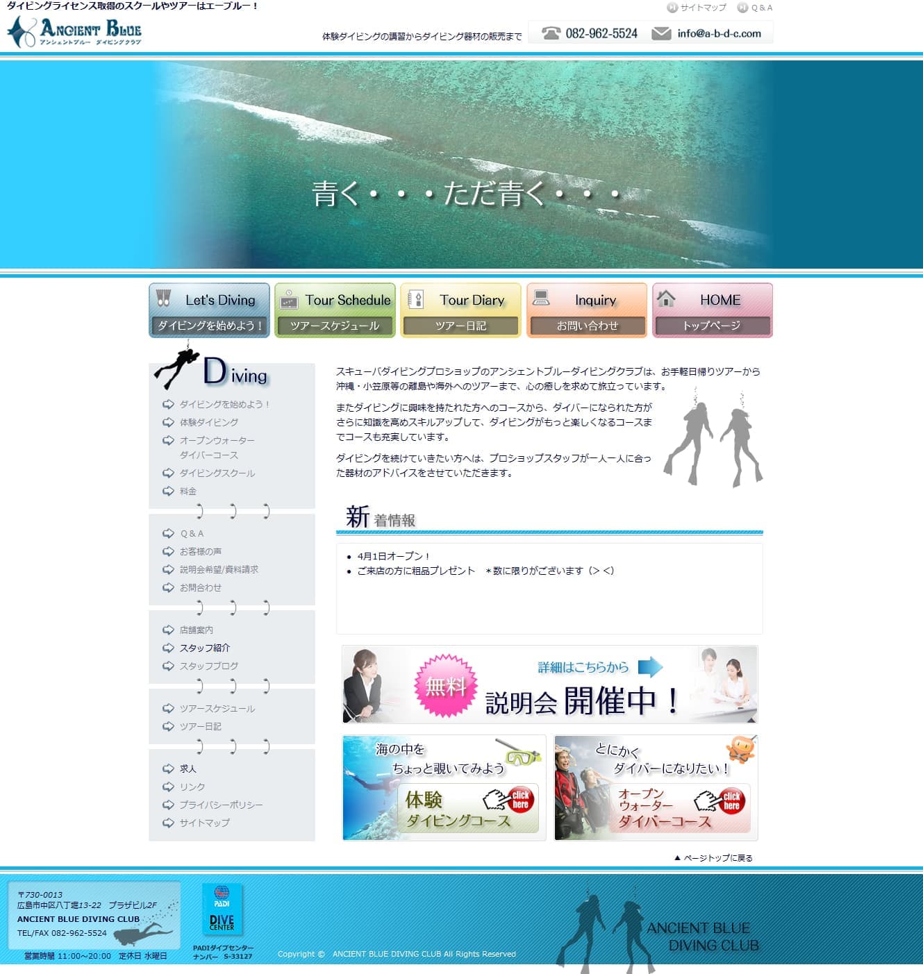 初心者向けコースからスキルアップ講習、国内外のツアーまで幅広いサービスが分かりやすく伝わるよう、情報を整理しました。